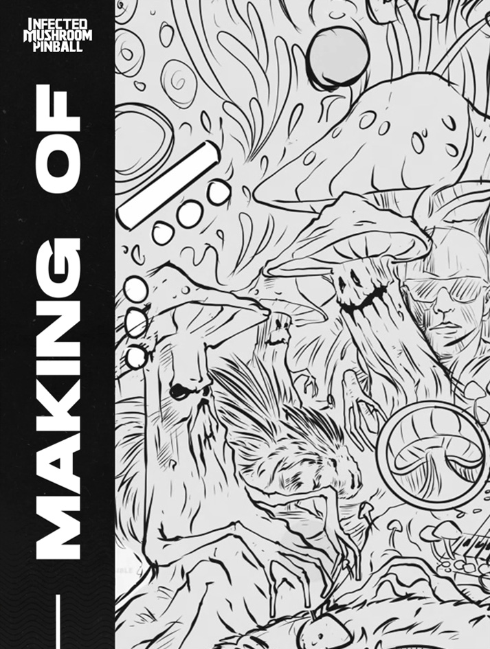 See how hand-drawn sketches evolve into a virtual pinball playfield, inspired by Infected Mushroom’s album art over the years.