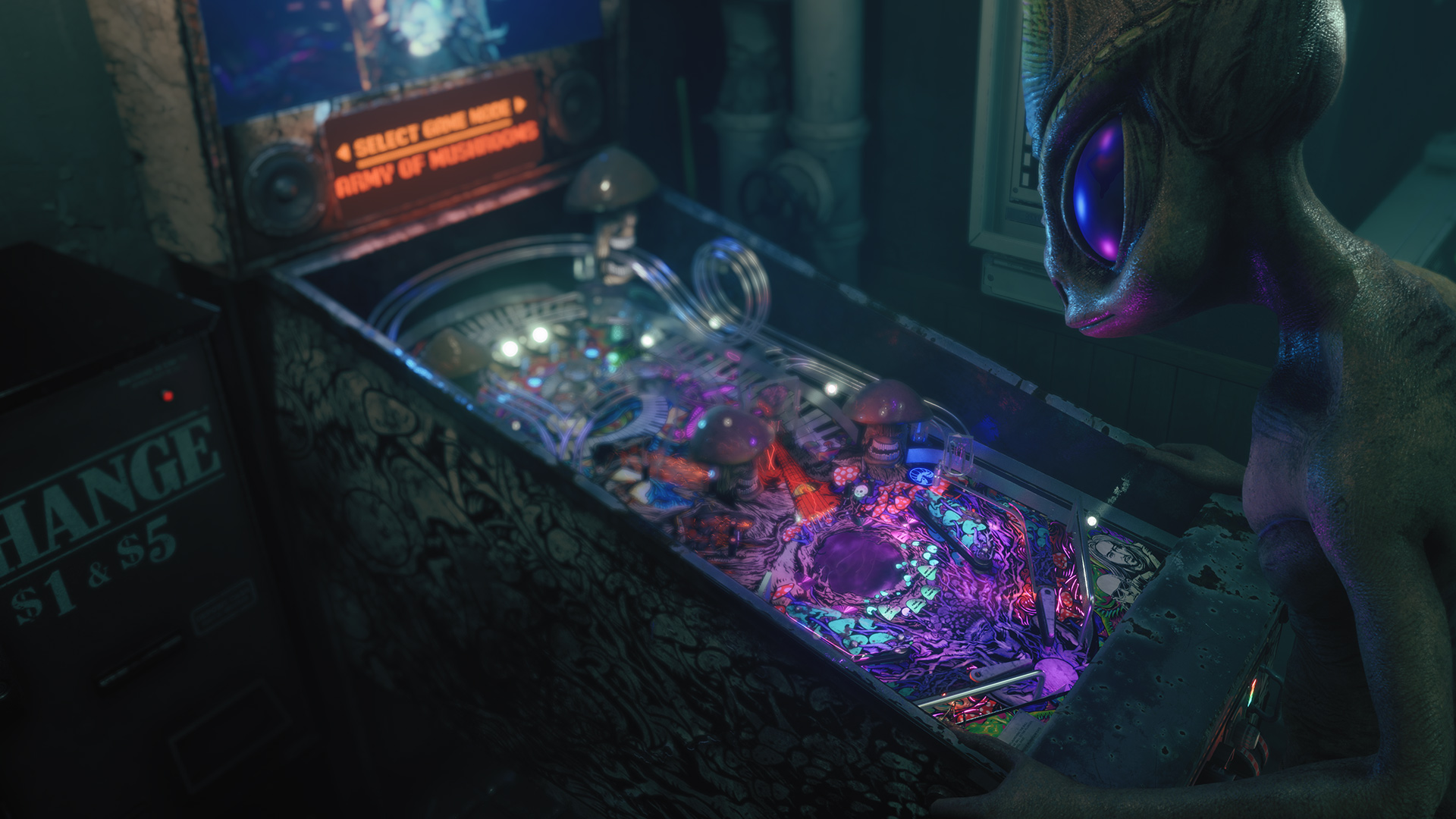 Infected Mushroom Pinball Trailer footage fully captured in-game and in real time using Unreal Engine 5, featuring both gameplay and cinematic scenes.